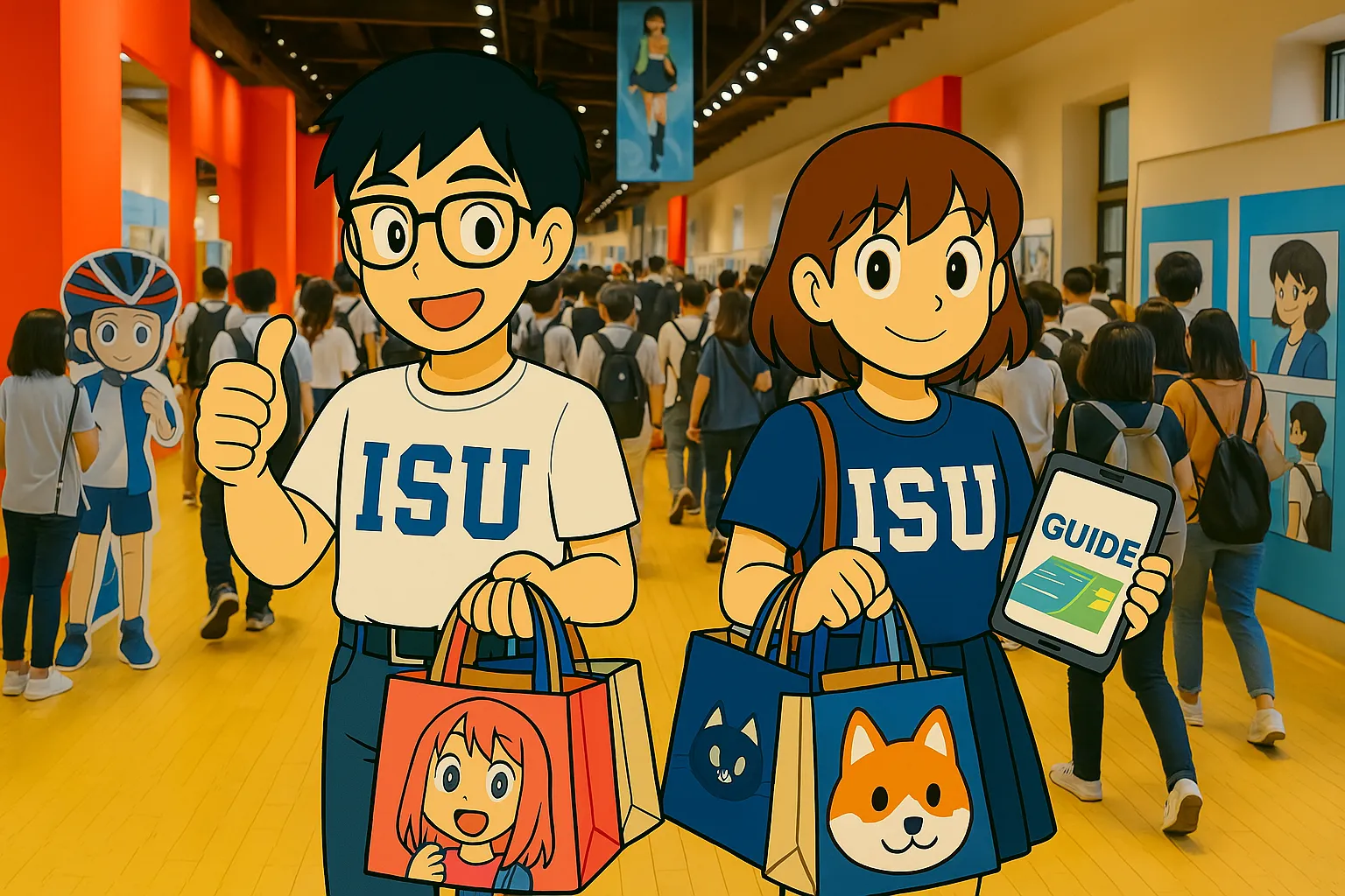 視設系亦因應全球IP經濟趨勢,推出多元的IP設計與品牌行銷模組課程,培養學生以獨特的世界觀、故事性創造角色與文化符碼。由林君豪同學創作的視設系代言原創角色「大藝」與「小科」,以科技藝術結合手繪電繪展現出不同風格,不僅象徵系上對未來學弟妹的加油鼓勵,更實際應用於校園行銷與數位展演之中,不僅出現在大港開唱、台灣祭、櫻花祭、動漫祭,更出現於他們日常打工的義大世界等足跡畫面。